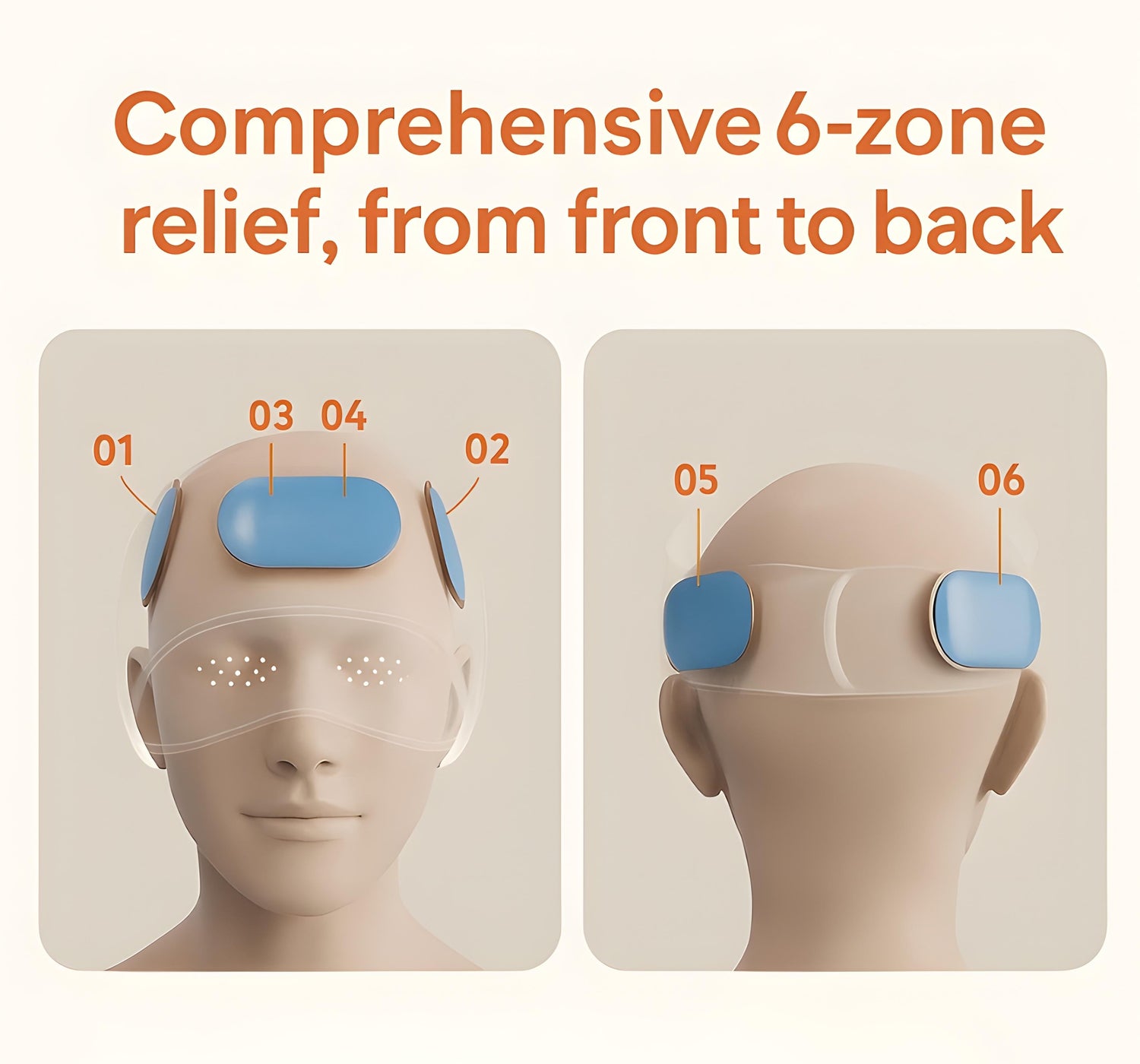 Dynamic air pressure gently massages acupressure points across the head and temples. This stimulates circulation, eases tension, and mimics the effect of professional massage.